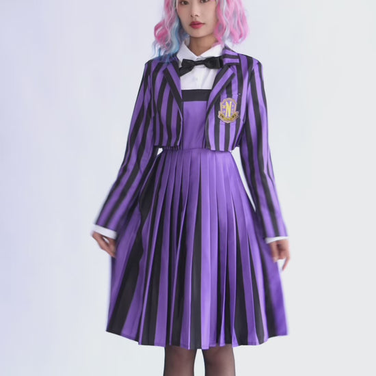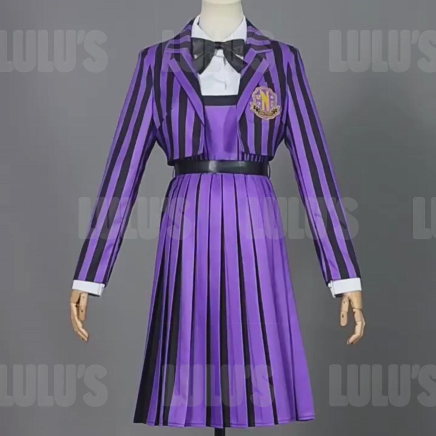 Crafted with lightweight, comfortable materials, this set is designed for all-day wear while staying true to Enid’s on-screen style.